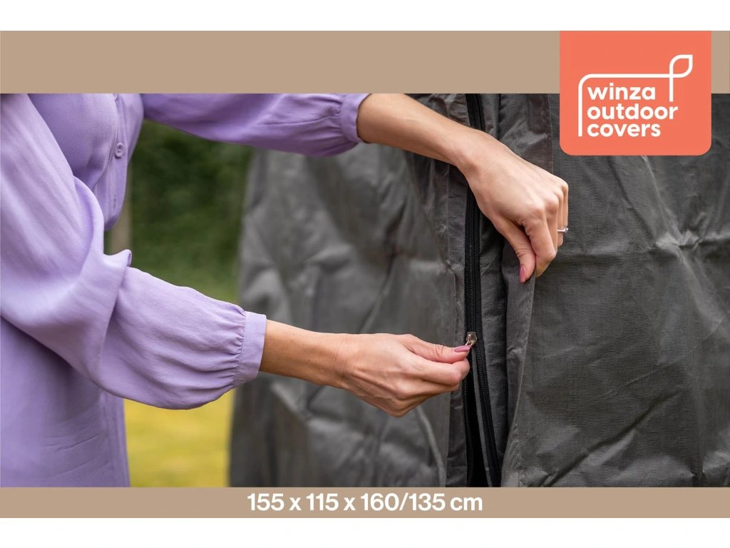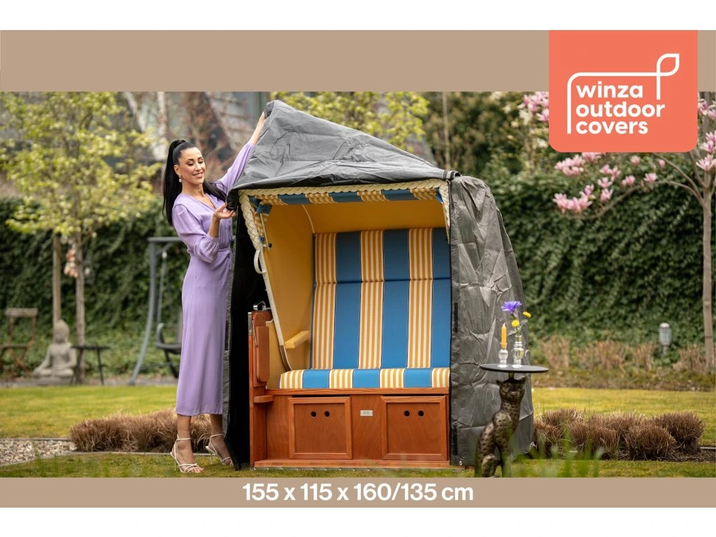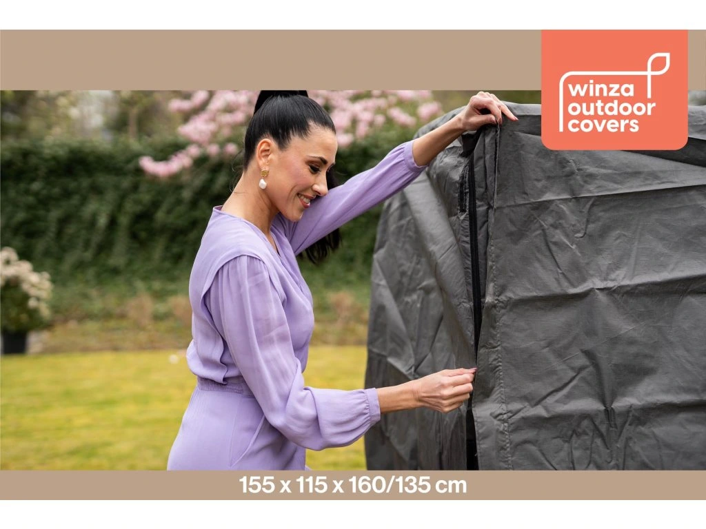 A borító fényűző PP anyagból készült bevonattal, vízálló (varratokat is beleértve), UV-álló és színtartó. Kanapékészlete tökéletesen védett az időjárás viszontagságaitól. A burkolat tépőzárral van rögzítve a kerti szerelvényhez.