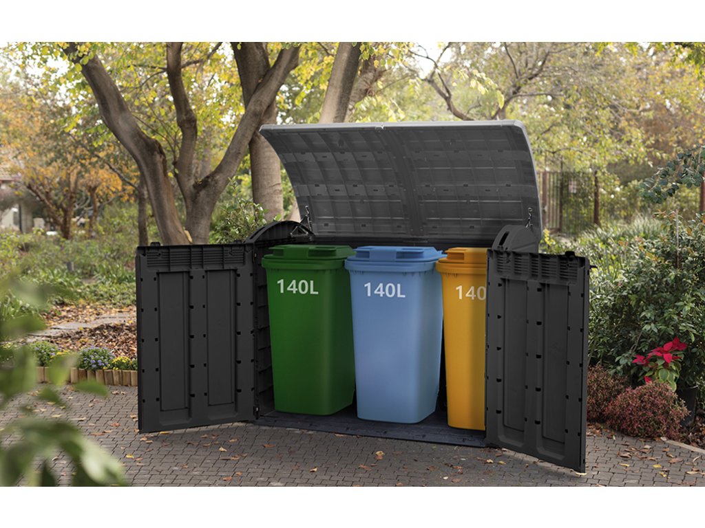 - a nagy, 2000 l-es kapacitásának köszönhetően a kerti bútoroktól a fűnyírókon át a grillsütőkig, medencepumpákig és kerékpárokig minden elfér benne