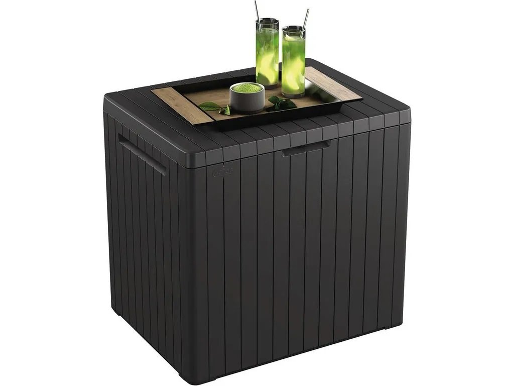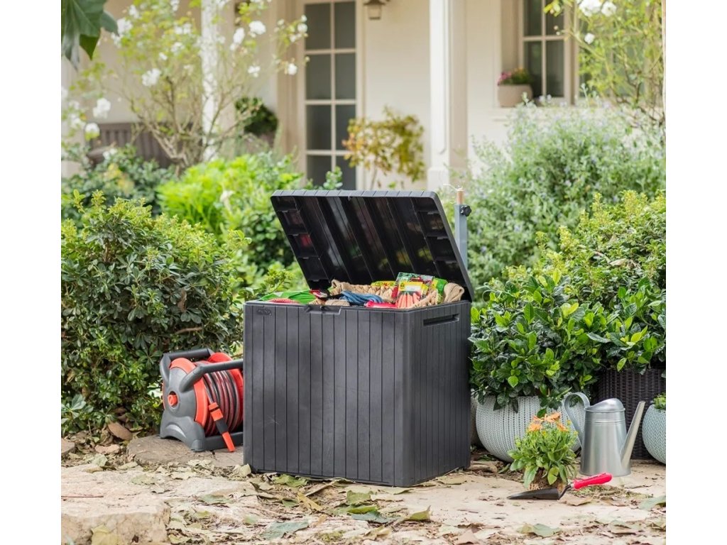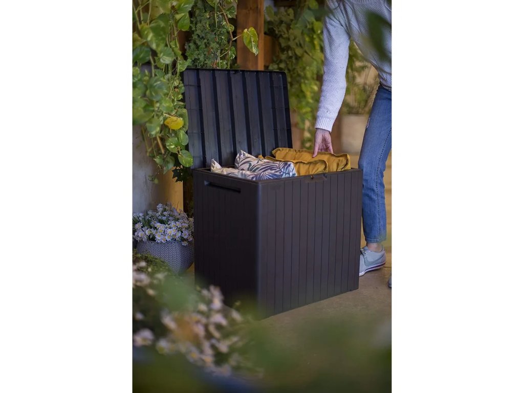Ennek a doboznak az előnye az egyszerű összeszerelés (szerszámok használata nélkül - mindent egy készletként szerelhet össze), a doboz kiváló minősége és modern kialakítása. Az anyag UV védelemmel rendelkezik, és ellenáll a kedvezőtlen időjárási viszonyoknak. A tárolódoboz tervezőasztalként is használható. Különféle apró tárgyakat kell elrejteni, de nincs hely a nappaliban egy másik bútornak? Nem probléma – a CITY STORAGE BOX-ot az erkélyen tárolhatja anélkül, hogy aggódnia kellene az alacsony hőmérséklettől vagy az UV-sugárzástól.